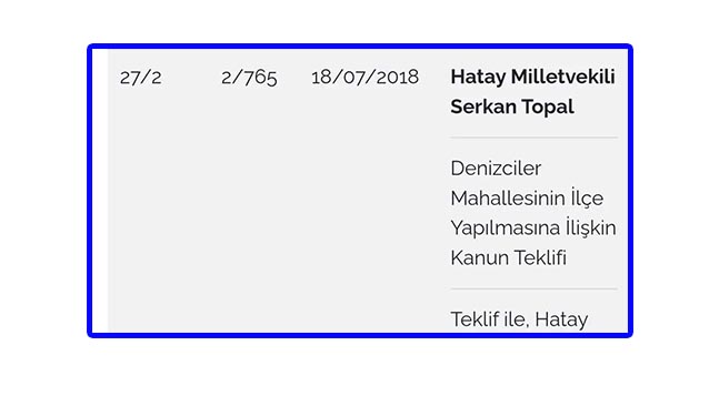 Eğer, 27’nci yasama dönemindeki teklifler yasalaşarak bu coğrafyada DENİZCİLER İLÇESİ (53 bin 848 kişi) kurulsaydı, nüfusuyla Belen (37 bin 876 kişi), Erzin (43 bin 103 kişi), Kumlu (16 bin 242 kişi), Payas (44 bin 530 kişi) ve Yayladağı (42 bin 019 kişi)’dan daha kalabalık olacaktı.